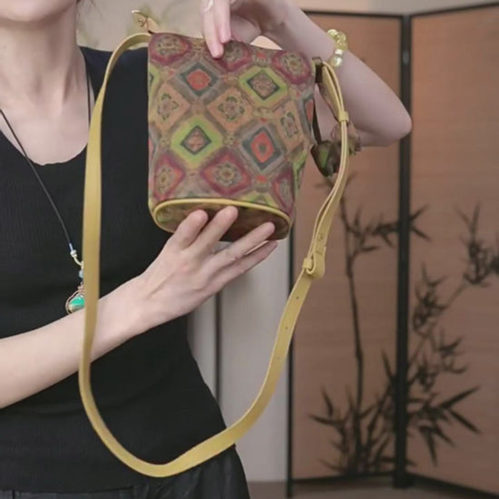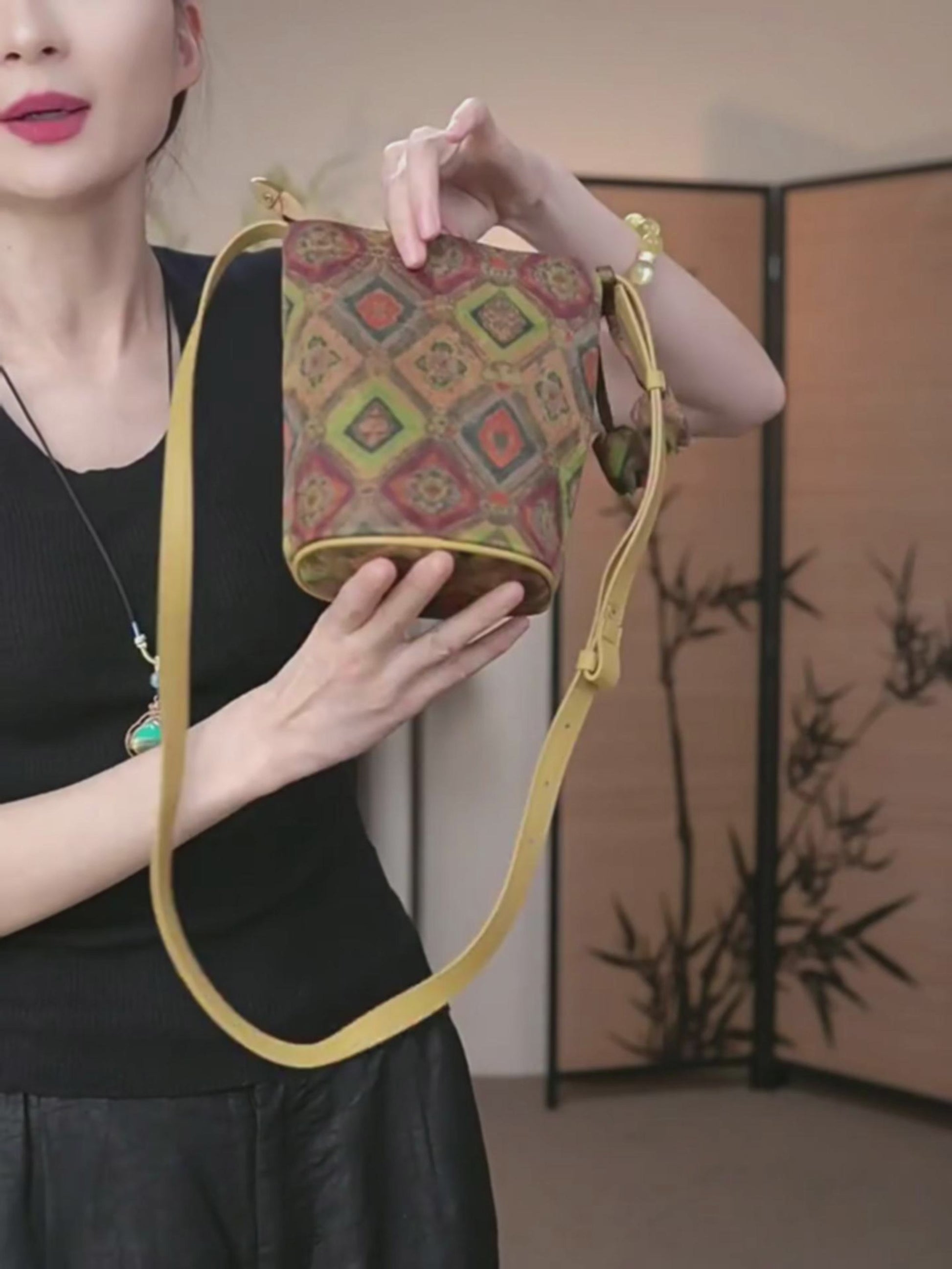 East-Meets-West Elegance: Windowpane Pattern Gambiered Canton Gauze Silk Phone Bag - Chic Oriental Mini Crossbody