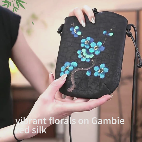 Gambiered Guangdong Silk Crossbody Bag | Hand-Painted Chinese Art | Women's Phone Purse